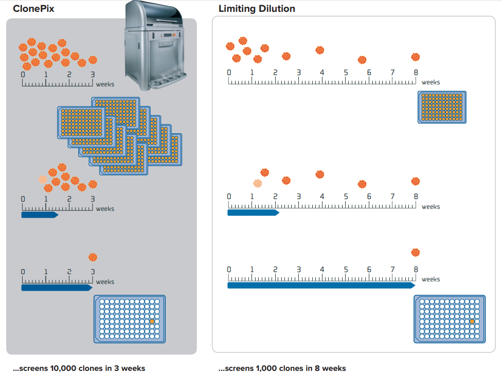 - Detección de clones y aislamiento de células individuales (Líneas Celulares y monoclonalidad): Clone Select Imager, Sistemas Qpix, Clone Pix 2.