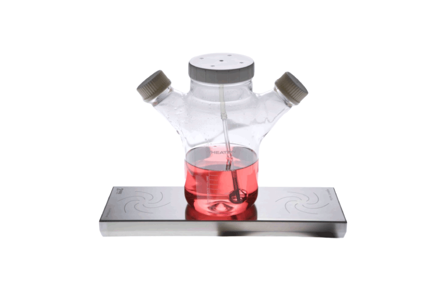 Agitador magnético con 4 posiciones de agitación, gran superficie, también adecuado para medios de cultivo viscosos, sin mantenimiento.