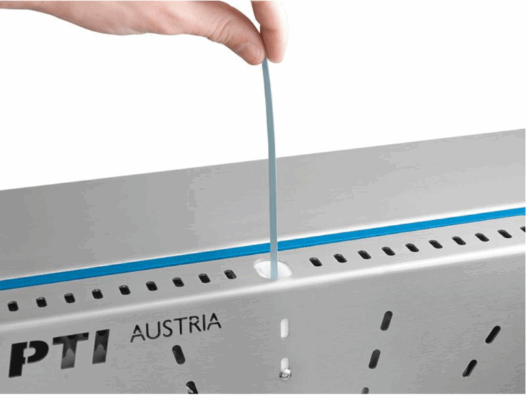 Reemplazar los segmentos corrugados solo lleva unos dos minutos. Una “tercera mano” para sostener la muestra corrugada mientras la muestra se está uniendo se incluye en el alcance de la entrega.