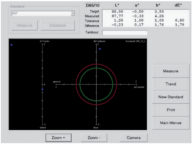 El modelo de mesa compacta se suministra con una PC, monitor, mouse y teclado. El software “WinPaper” especialmente desarrollado para la industria del papel se opera de manera compatible con Windows utilizando un teclado y un mouse estándar. Permite mediciones y calibraciones convenientes con la ayuda de los estándares negro, blanco y UV (opcional).