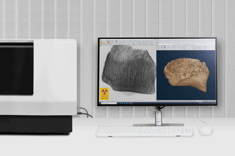 La fuente de rayos X tiene una construcción permanentemente sellada, libre de mantenimiento, con un tamaño de dispersión inferior a 5 micrómetros, lo que proporciona una resolución espacial muy alta del sistema. El sistema integrado de reposicionamiento del haz garantiza una larga vida útil de la fuente. La potencia de la fuente de 20 W permite reducir el tiempo de exploración y mejorar la relación señal/ruido.